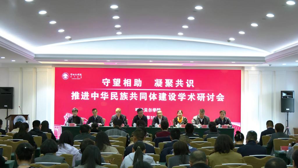 “同心掬得满庭芳,团结奋进谱华章”,在全国上下深入推进中华民族共同体建设的重要时期,在呼伦贝尔市委统战部、市民委、市社科联等部门的大力支持下,由我校主办的“守望相助 凝聚共识——推进中华民族共同体建设”学术研讨会于10月12日至13日在呼伦贝尔市召开。呼伦贝尔市委常委、统战部部长马跃东,呼伦贝尔学院党委副书记、校长张玉柱,呼伦贝尔学院党委副书记张宏天,内蒙古自治区民委理论研究处处长张玲玲,呼伦贝尔市社会科学界联合会主席凌育苗,呼伦贝尔市委统战部副部长郭胜,呼伦贝尔市民委党组成员、副主任李玉兰,呼伦贝尔职业技术学院副院长-田朝晖等领导和120余名专家学者参加了会议。