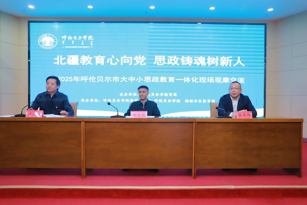 呼伦贝尔学院校长张玉柱在致辞中强调,呼伦贝尔学院将坚决贯彻落实党中央决策部署和自治区党委、市委工作要求,与各兄弟院校、市旗两级教育部门携手并肩,锐意进取,以更实的举措、更优的机制、更浓的氛围,努力构建全学段贯通、全要素融合、全方位协同的思政教育生态;学校将以铸牢中华民族共同体意识为主线,推动形成“高校引领、中小学联动、校地协同”的思政育人新格局,为呼伦贝尔市教育高质量发展贡献高校力量。