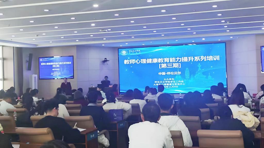 为深入贯彻教育部等十七部门《全面加强和改进新时代大学生心理健康工作专项行动计划(2023—2025年)》及《内蒙古自治区加强和改进新时代学生心理健康教育工作实施方案》精神,扎实推进大中小学心理健康教育一体化建设,11月9日,我校在崇文楼A201会议室举办了呼伦贝尔市教师心理健康教育能力提升系列培训(第三期)。呼伦贝尔市各高校辅导员、中小学心理教师及我校专兼职心理教师参加了本次培训。