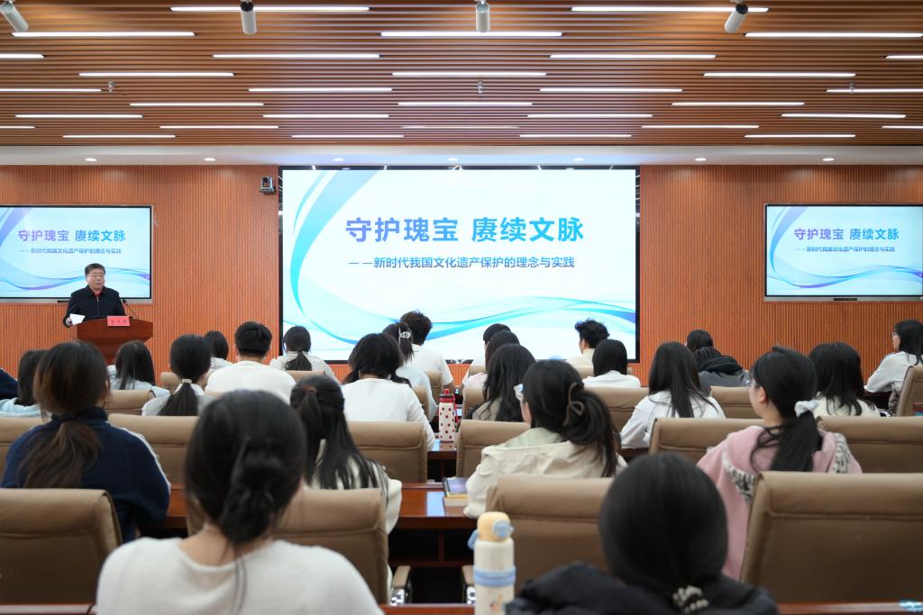 为全面贯彻铸牢中华民族共同体意识主线,深入学习贯彻习近平文化思想,扎实推进“大思政课”建设,引导青年学生坚定文化自信、勇担文化传承使命,4月15日下午,我校党委书记李文阁以《守护瑰宝,赓续文脉——新时代我国文化遗产保护的理念与实践》为题,为全校大学生讲授了一堂内容翔实、形式生动的专题思政课。