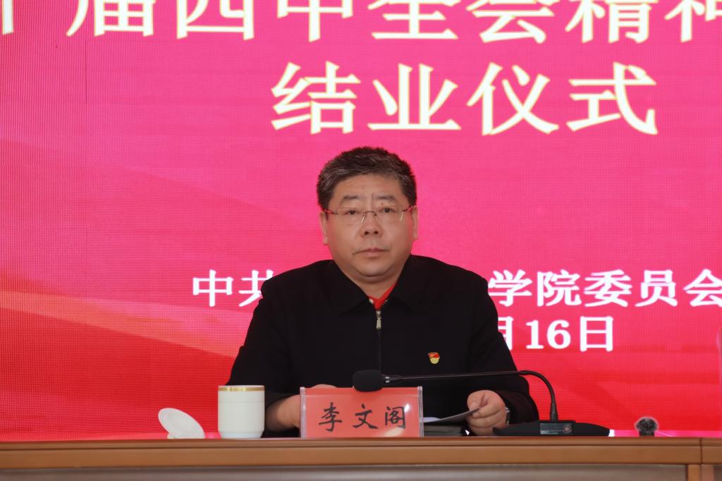 4月16日下午,培训班举行结业仪式。校党委书记李文阁出席并作总结讲话。他充分肯定了培训的成效,并对全体学员提出四点希望:一要在学深悟透上持续发力,坚定不移铸牢政治忠诚;二要在履职实践中磨砺成长,全方位锤炼干事创业过硬本领;三要坚持严抓严管常态长效,全面提升学校现代化治理效能;四要立足立德树人根本任务,以实干笃行践行教育初心与使命担当。同时,他要求全体学员,以此次巡视工作及后续整改为重要契机,持续规范办学治校流程、严明纪律作风、优化管理服务体系,稳步提升学校治理体系和治理能力现代化水平,为学校长远健康可持续发展提供坚实保障。