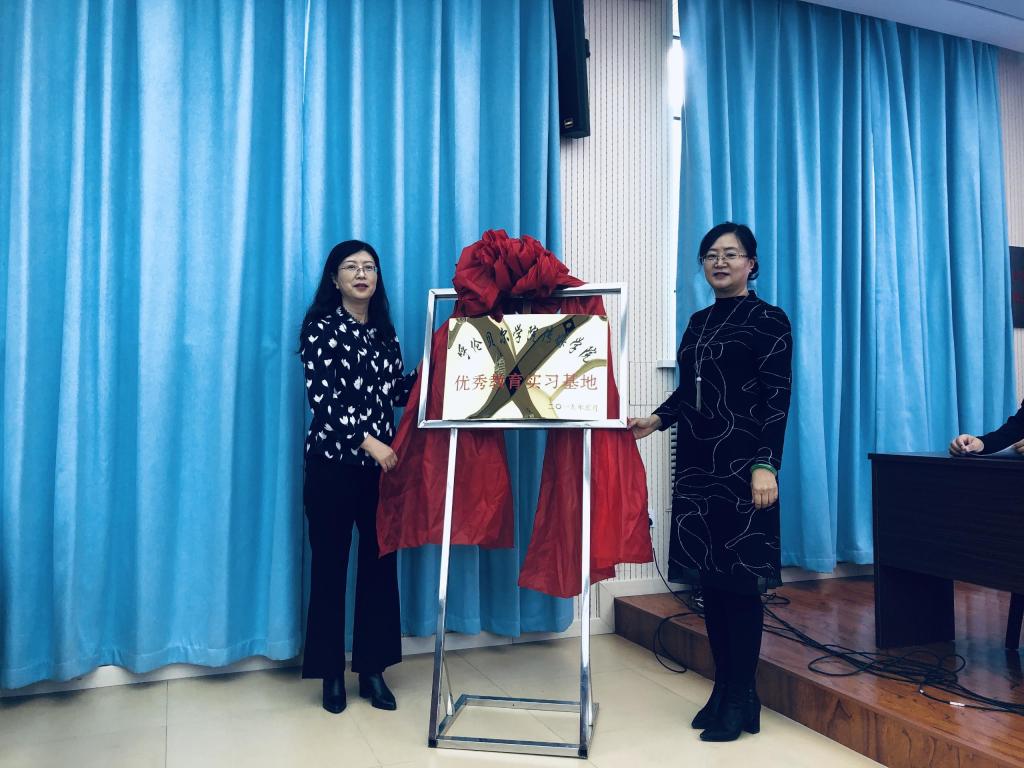 在海拉尔第七中学,张海红校长代表学校对传媒学院各位领导的到来表示热烈的欢迎,对我院实习生的表现给予了肯定,同时表示教育技术学专业实习生的到来为海拉尔区第七中学教育信息化的发展提供了有力保障,对助推中学信息技术教育具有重大意义。王晓莉院长对海拉尔区第七中学领导、教师长期以来对实习生的悉心指导表示感谢,同时就下一步在学生实习、基础教育改革等方面的合作提出了建设性意见。并举行优秀教育实习基地挂牌仪式。