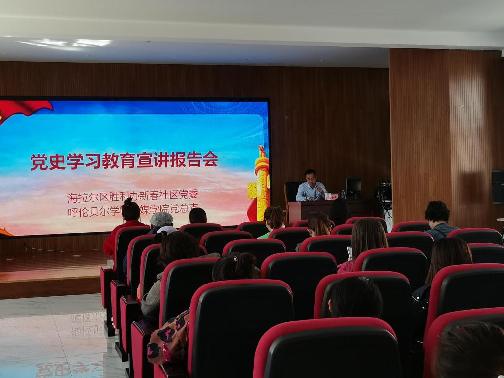 为加强党史学习教育,推进融合党建工作,6月2日,传媒学院党总支与胜利办新春社区党委共同举办了党史学习教育宣讲报告会。传媒学院教工党支部和胜利办新春社区党委的全体党员参加了学习。