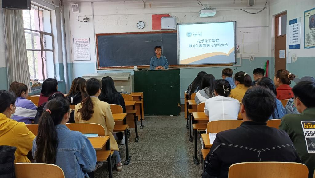 5月28日下午,化学化工学院在工程楼206召开了2021届化学(师范)专业集中教育实习总结大会。化学系主任侴晓玉主持会议。化学专业实习全体学生参与,化学化工学院副院长毕瑞金出席会议。