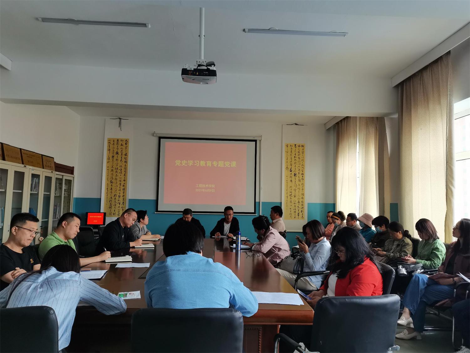 为扎实开展好党史学习教育,6月9日下午,工程技术学院在笃学楼505会议室举办了党史学习教育专题党课。工程技术学院党总支书记官志文主讲,全体教职工参加。