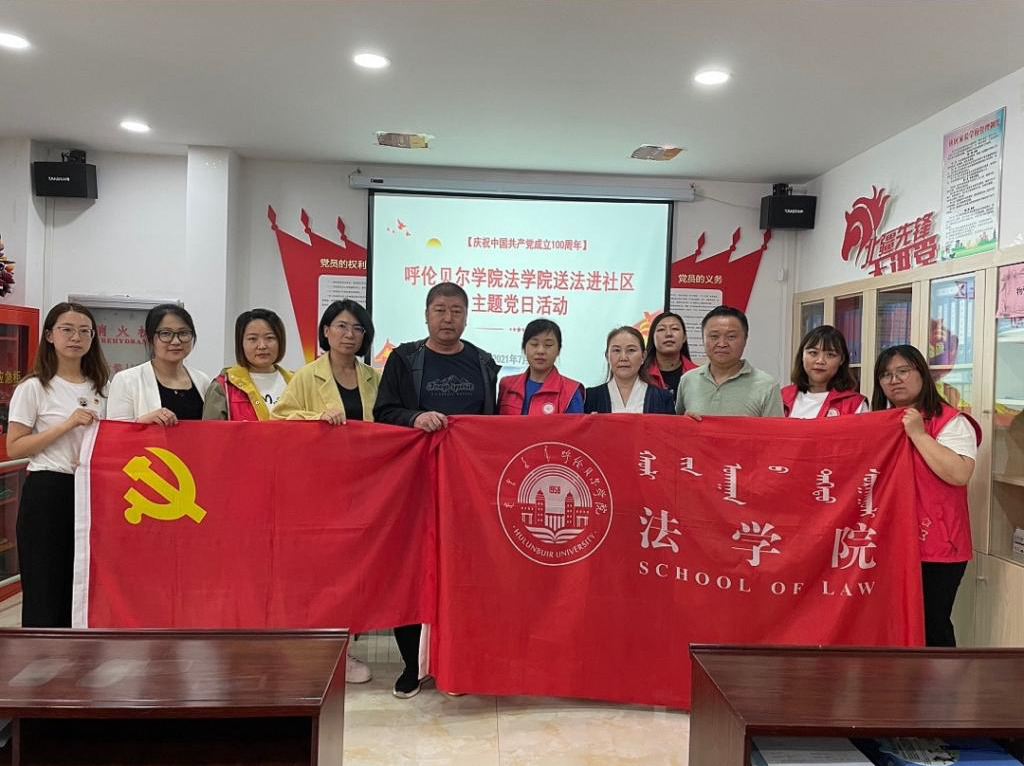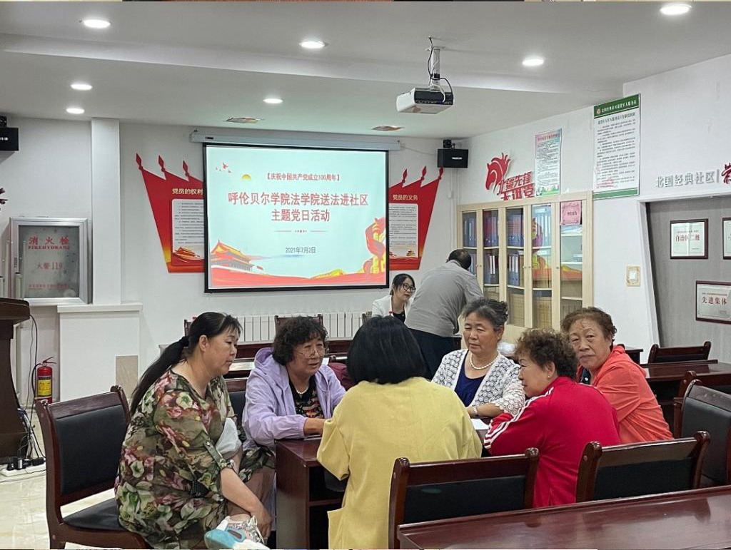 为庆祝中国共产党成立100周年,深入贯彻落实《呼伦贝尔学院党史学习教育“我为群众办实事”实践活动工作方案》,开展“我为群众办实事”实践活动。7月2日,法学院教师党支部组织教师党员开展“送法进社区”主题党日活动。