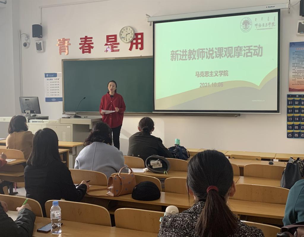 为提高新进教师的课堂教学技能,促进新进教师快速成长,10月6日下午,马克思主义学院在崇文楼B122教室开展新进教师说课观摩活动。学院6名中青年教师进行了示范说课,新进教师进行观摩。