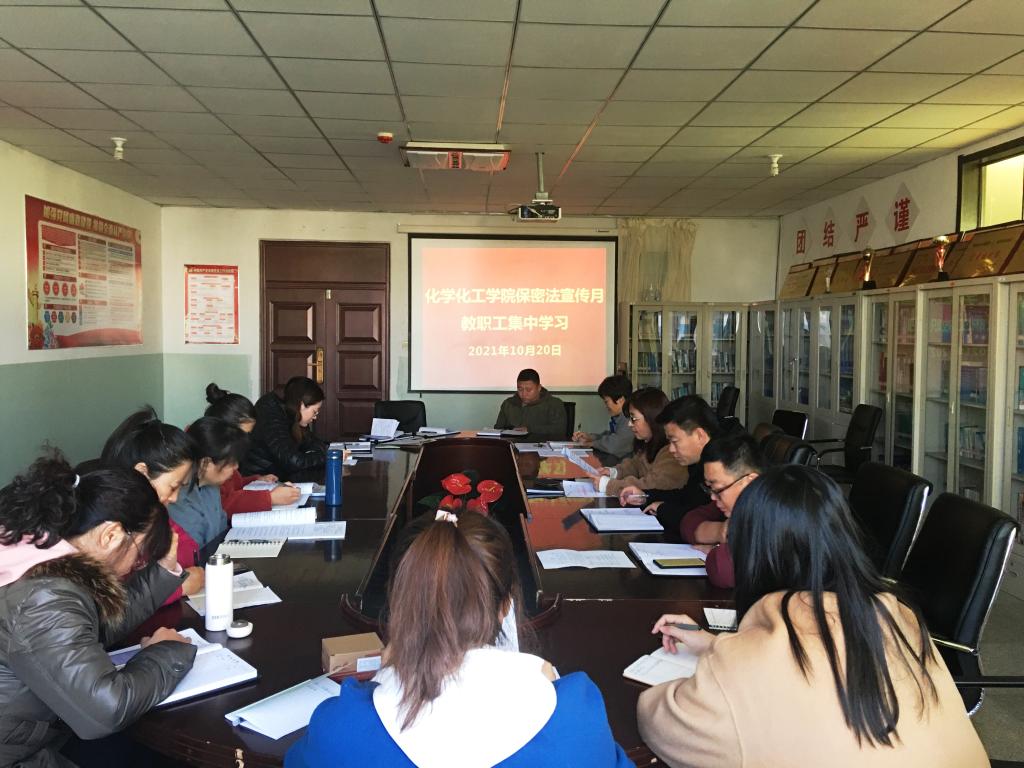 10月13日,化学化工学院党总支书记艾丽对保密法学习宣传活动进行了布置。化学化工学院采取“自学+集中学习”“主题团日活动”“主题班会”等形式进行宣传学习。全体教师通过“保密观”微信公众号、学习强国等平台观看保密法宣传视频、保密英雄模范等内容,对保密工作有了深刻的认知。10月13日至20日期间,化学化工学院各班级召开“保密学习”主题团日活动及主题班会。在活动中,学生们重点对老一辈无产阶级革命家、烈士王若飞的事迹进行了学习,以学习先进事迹为契机,弘扬保密工作良好风尚,激发学生热情,增强事业心和责任感。通过活动加深了学生的保密意识。