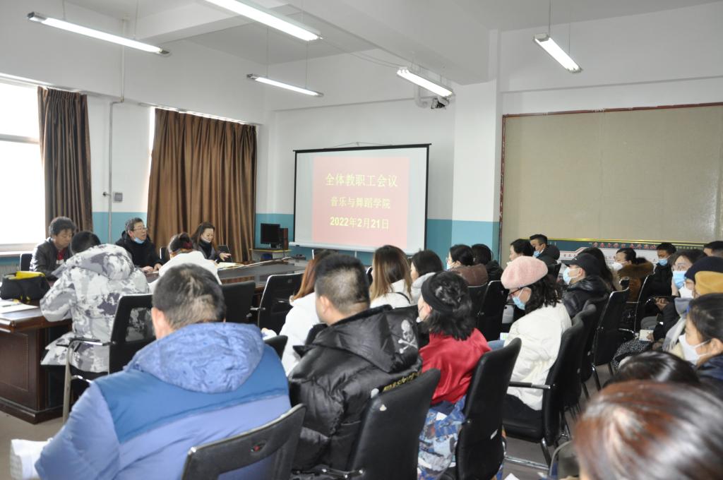 为确保新学期各项工作有序开展,2月21日下午,音乐与舞蹈学院在艺术楼606会议室召开全体教职工会议,本次会议由党总支书记李雅杰主持。