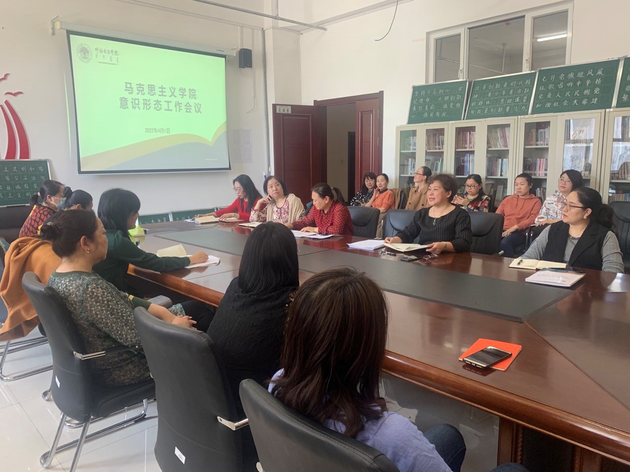 4月1日,马克思主义学院在崇文楼B123会议室召开意识形态工作会议。马克思主义学院全体教师参加会议。