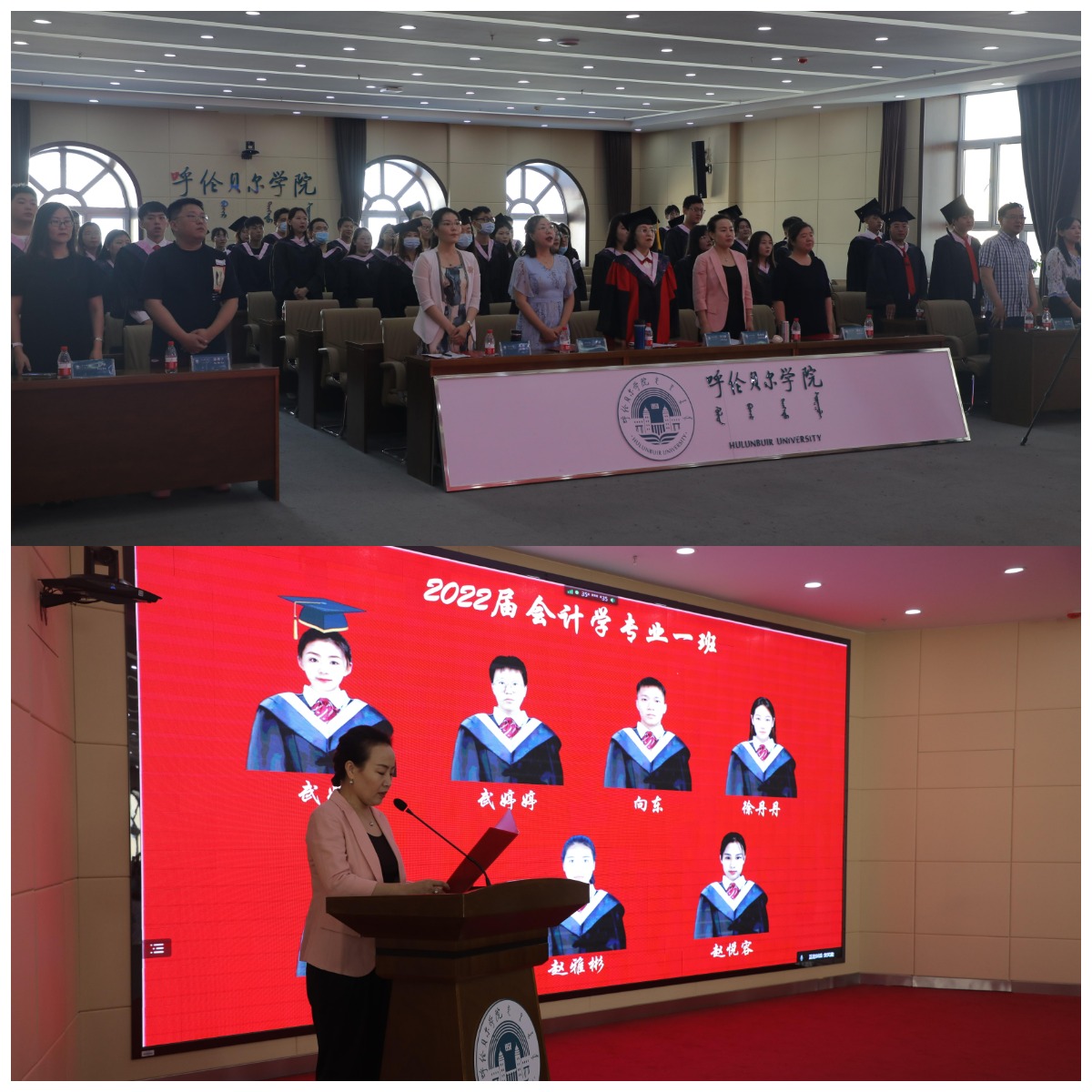 毕业典礼在庄严的国歌声中拉开帷幕。经济管理学院班子成员宣读了学位授予名单及2022届自治区级和校级三好学生、优秀毕业生和优秀学生干部名单,并在线上对五个专业310余名毕业生拨穗正冠。