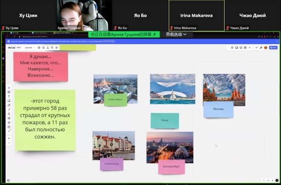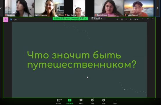 为提高我校学生对学习俄语的兴趣,增进中俄学生之间的了解和友谊,,在国际教育学院(外事处)的组织和协调下,我校共有来自7个院系的52名学生参加了由俄罗斯克拉斯诺亚尔斯克国立师范大学举办的线上俄语夏令营活动。