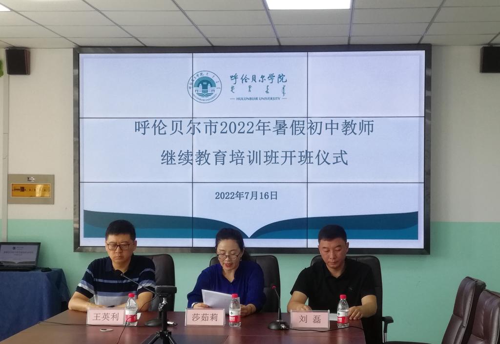 7月16日上午,由我校组织实施的呼伦贝尔市2022年暑假初中教师继续教育培训班正式开班。继续教育学院院长莎茹莉、副院长王英利、培训科科长刘磊及相关工作人员出席了开班仪式,授课专家及2100余名参训教师在线参加开班仪式。开班仪式由王英利副院长主持。