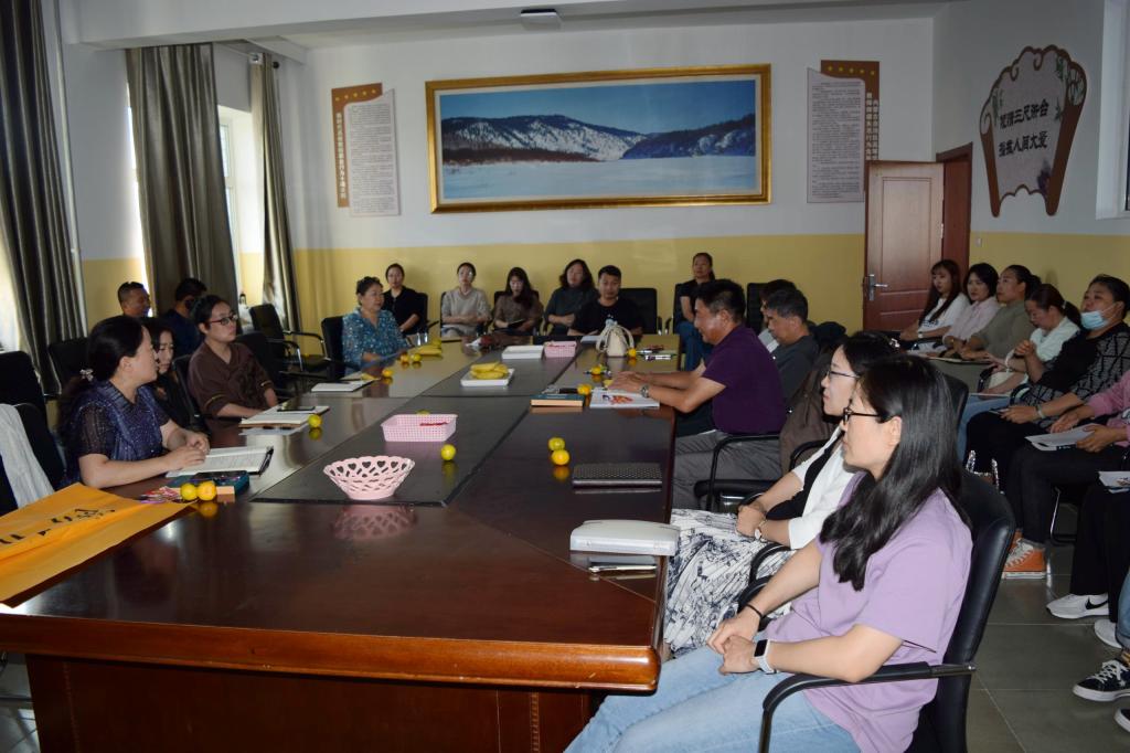 会上,党总支书记宋旭霞带领全体教师学习《内蒙古自治区教育条例》和《呼伦贝尔学院校园创建宣传手册》。