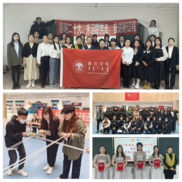10月5日,学院组织开展诵读活动,学生们慨激昂的诵读中饱含对党、对祖国的热爱,抒发了强烈的爱国情怀。通过激烈的比拼,2020级学前教育本四班《盛世中国》荣获一等奖,2020级学前教育本十班《祖国啊!我亲爱的祖国》荣获二等奖,2020级小学教育本三班《美丽的中国梦》荣获三等奖。通过诵读优秀爱国诗文,增强了学生们规范使用国家通用语言文字的意识,践行了说好普通话的时代要求,激发了学院学子们对党、对祖国的热爱之情,以实行动迎接党的二十大胜利召开。