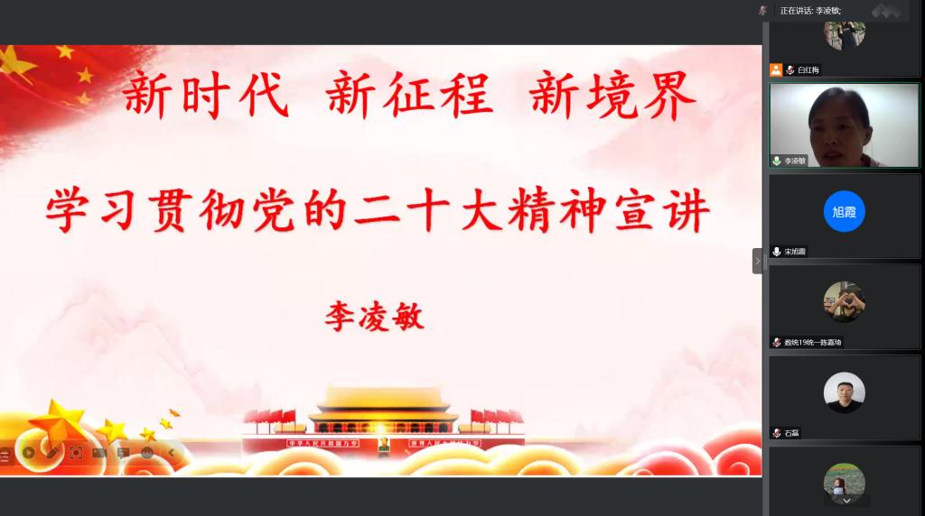 12月5日,数学与统计学院党总支邀请呼伦贝尔学院理论宣讲团成员、马克思主义学院李凌敏副教授在线上开展党的二十大精神理论宣讲活动。活动由党总支书记宋旭霞主持,98名师生党员在线上聆听了宣讲。