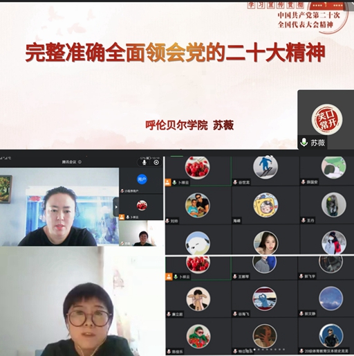 为深入学习领会党的二十大精神,12月7日,体育学院党总支邀请学校宣讲团成员、历史文化学院苏薇老师在线上为全体师生开展党的二十大报告宣讲活动。活动由党总支书记李伟艳主持。