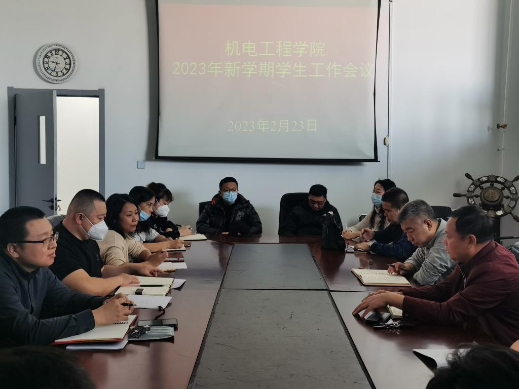 2月23日上午,机电工程学院在东山实验楼519会议室召开2023年新学期学生工作会议,会议由学院党总支书记王旭主持,党总支副书记汪鑫,团学办公室全体辅导员,各行政班班主任共21人参加会议。