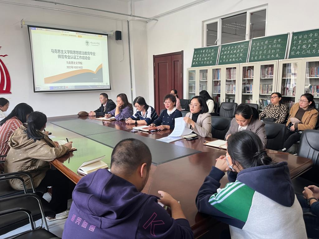为扎实推进师范类专业认证工作,10月18日,马克思主义学院在崇文楼B123会议室召开了师范专业认证工作启动会,学院全体教师参加会议,学院院长吴秀芳主持会议。