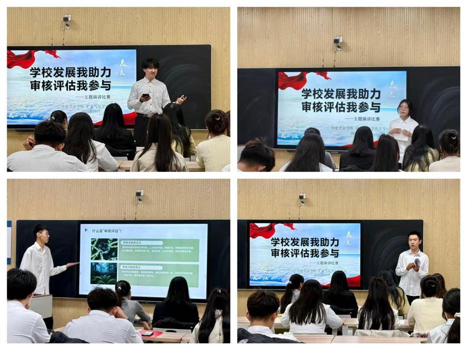 为充分激发学生参与审核评估的主动性,增强其主人翁意识,10月11日,矿业与化学化工学院在师专楼216教室举办“学校发展我助力,审核评估我参与”主题演讲比赛。此次活动不仅帮助学生清晰认知审核评估的核心意义,明确其与个人成长、学校发展的深层关联,更有效凝聚思想共识,为学校迎接审核评估注入青春力量。