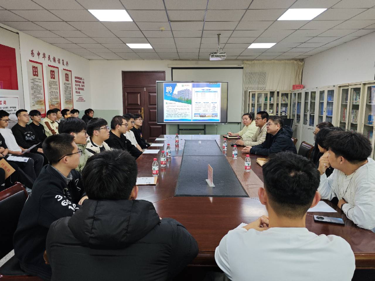 为精准助力采矿工程专业学生把握就业先机、明晰职业方向,10月17日下午,矿业与化学化工学院联合中国平煤神马集团瑞平公司在科技楼四楼会议室开展专场招聘宣讲会。瑞平公司党委副书记李春伟,学院党委副书记敖岩辉、辅导员庞明慧及2022级采矿工程班全体同学参加招聘宣讲会。