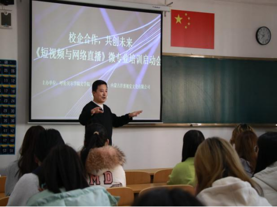 4月2日下午,文学院与内蒙古洋葱视觉文化有限公司联合举办的短视频与网络直播微专业培训工作正式启动,在崇文楼B座422教室开展首次网络直播培训见面会。