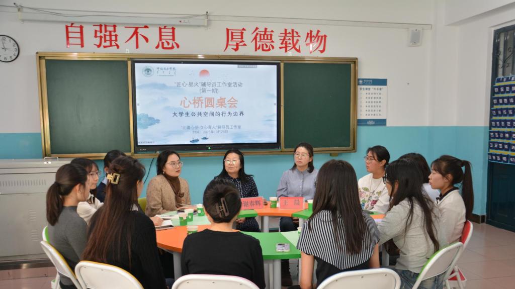10月29日,北疆心语·立心育人辅导员工作室以“大学生公共空间的行为边界”为核心主题,以心桥圆桌会为平台,温情启动“匠心·星光”辅导员工作室活动,活动由工作室负责人娜米尔主持,特邀学生工作处副处长谢春辉、教育学院辅导员王晨现场指导,10位来自不同专业、不同年级的学生代表齐聚一堂,通过深度对话破解校园文明难题,以专业建议为学生成长赋能。
