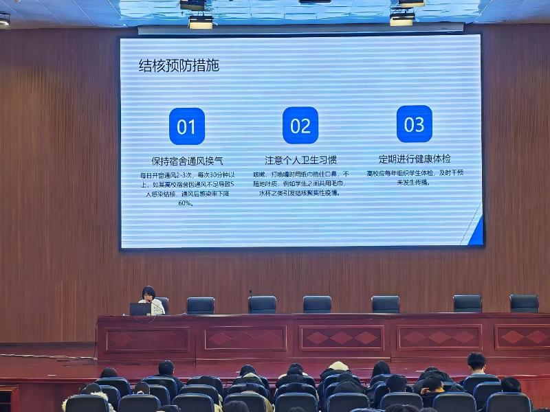 讲座中,校医院专业医务人员结合春季气候特点,重点围绕流行性感冒、水痘、肺结核等校园春季易高发传染病的流行病学特征、临床表现、传播途径进行了系统讲解。在预防措施方面,强调要落实“早发现、早报告、早隔离、早治疗”的防控原则,并结合我校校园实际场景,重点介绍了学校在日常消杀、健康监测、应急处置等方面的具体防控方案。通过案例分析、知识问答等形式,引导学生深入掌握传染病防控要点,增强防控意识、掌握科学防护方法。