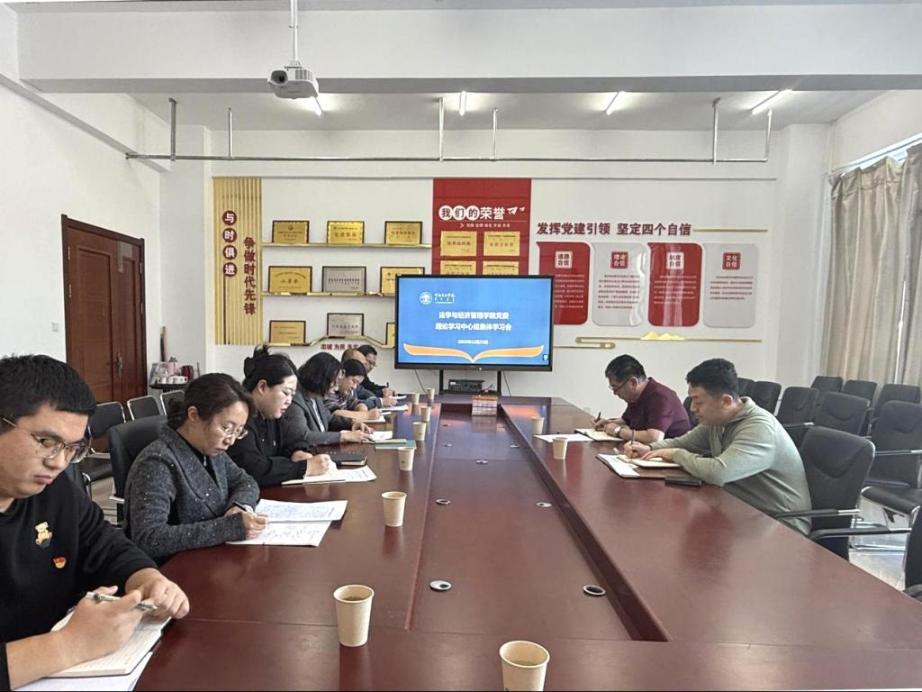 为进一步推进理论学习制度化、规范化,不断提高基层党组织理论学习中心组学习质量与效果,12月23日,校党委书记李文阁深入法学与经济管理学院,巡听旁听法学与经济管理学院党委理论学习中心组集体学习研讨会,党政办公室副主任陈政陪同,法学与经济管理学院领导班子成员、教工党支部书记、学生党支部书记参加学习研讨。会上,法学与经济管理学院党委书记李静传达学习了中央经济工作会议精神。学院副院长张舒作了题为《准确把...